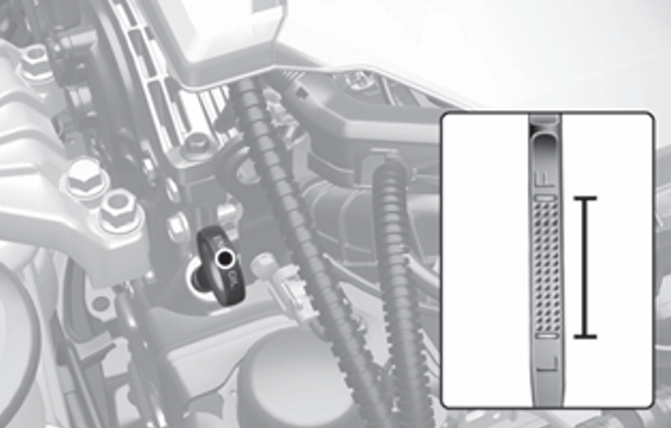 7. 보충 후에는 오일 양이 규정량에 속하는지 레 벨 게이지로 다시 확인하십시오.